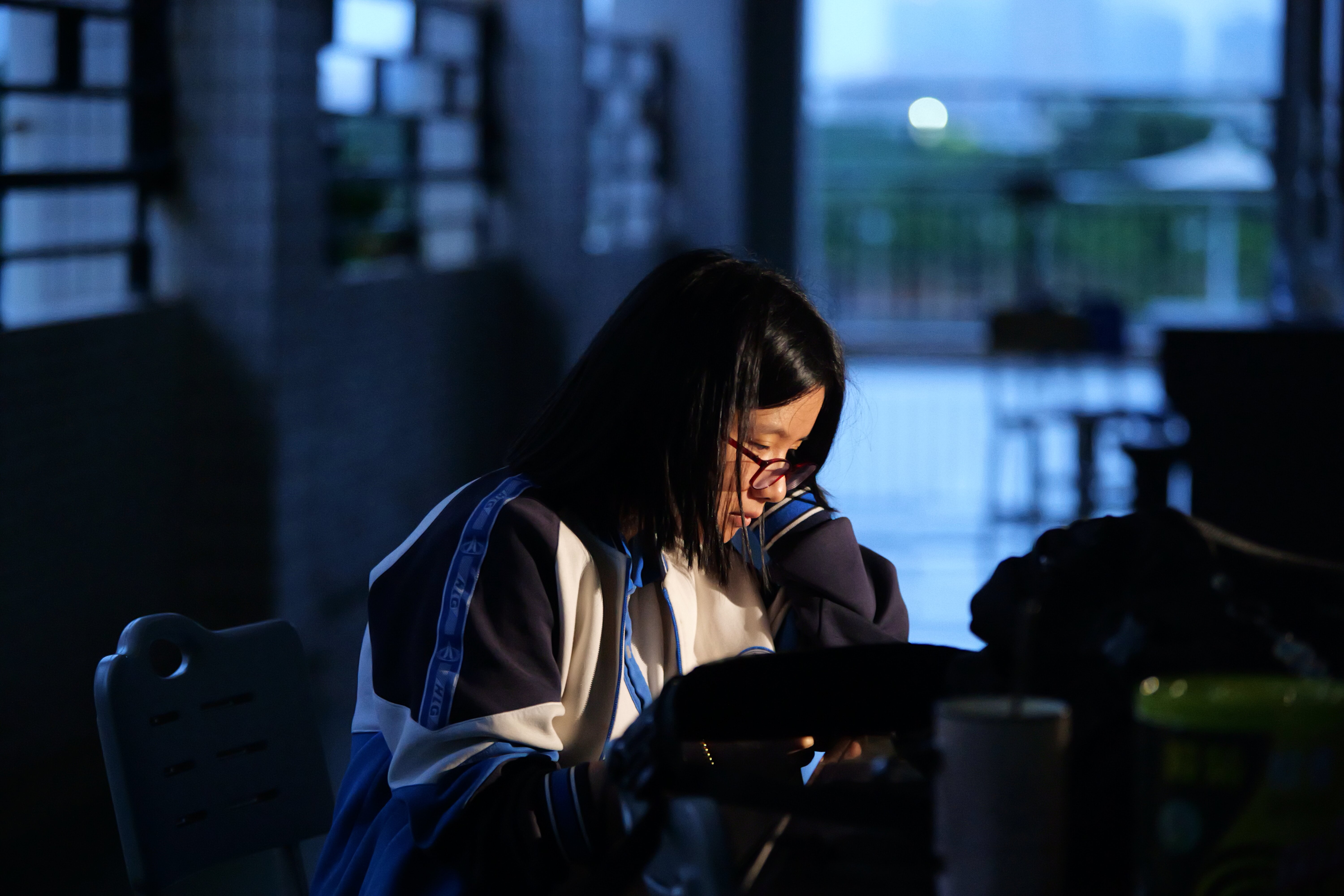 凌晨5點10分,天空下起了小雨,夜色尚未散去,惠州市華羅庚中學的部分高三教室已經亮起溫暖的燈光,高三(8)班的黃珈穎在課室外的走廊上安靜地看書,她告訴記者:“我希望在剩下的十幾天里再努力一點,希望成績還能提上去。”