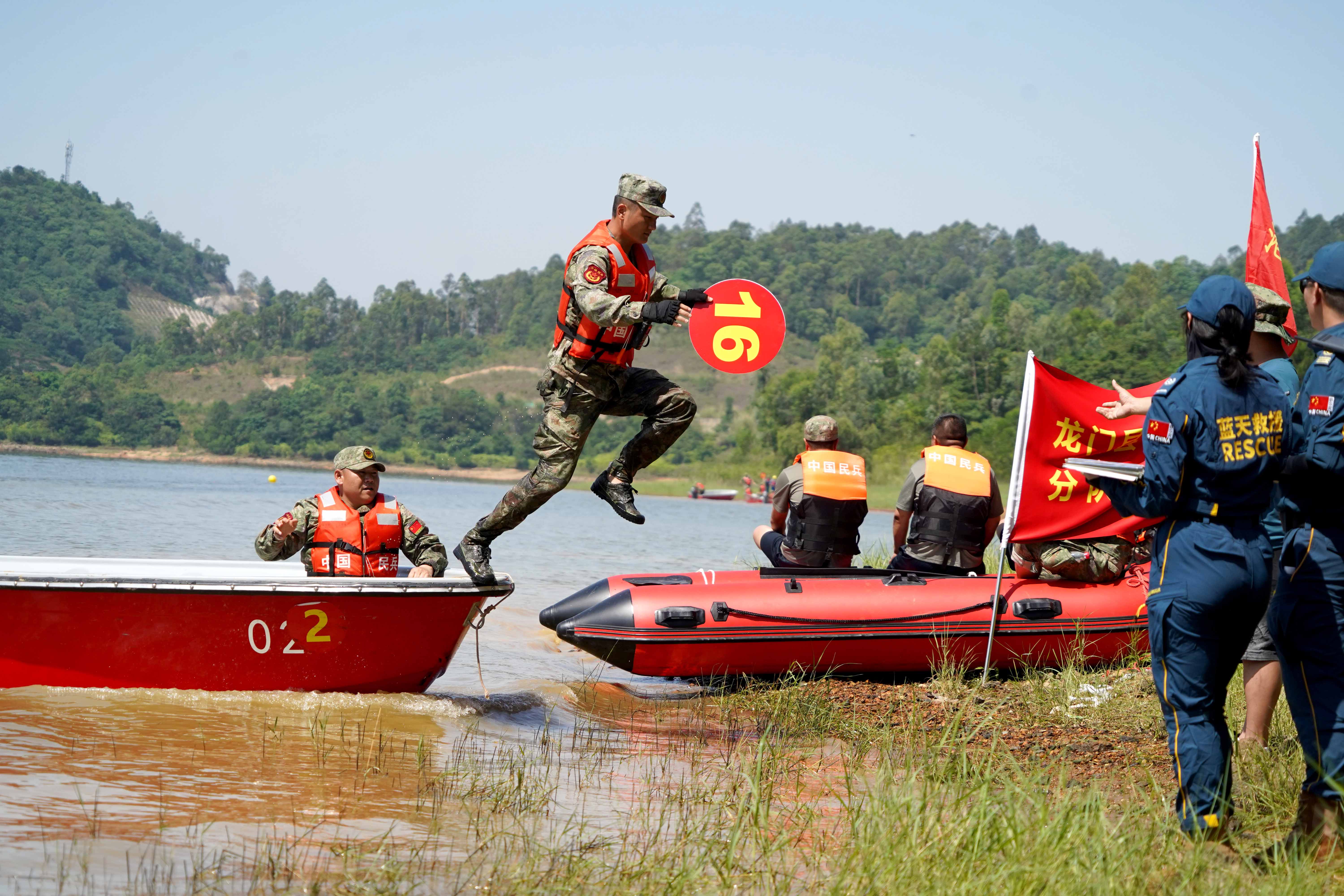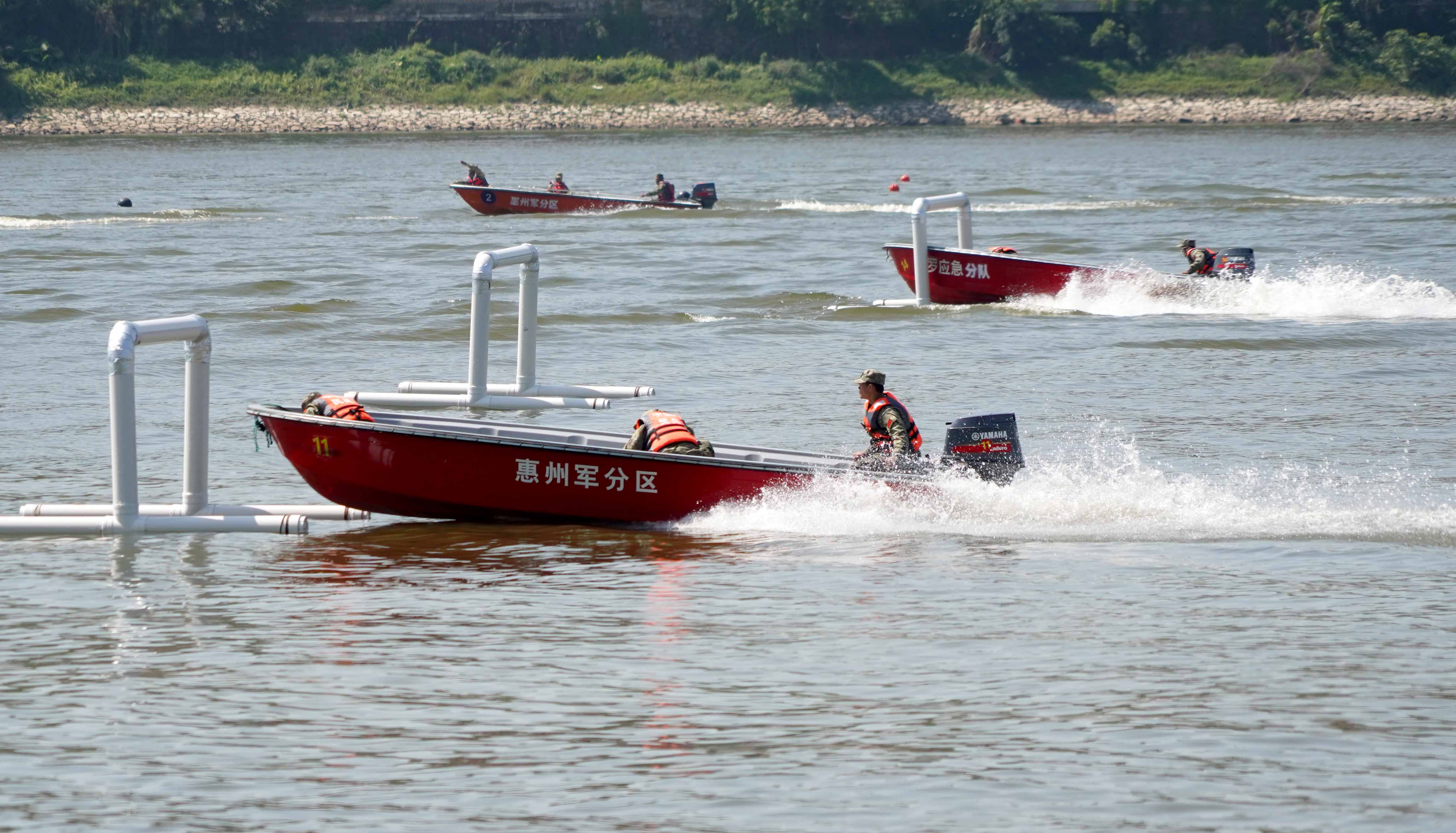 當天上午,在惠城區角洞水庫寬闊的水面上,只見參加演練的民兵骨干軍容嚴整、士氣高昂,大家操作班組沖鋒舟先后進行了S形過障、倒舟行駛、通過障礙和協同搜救課目連貫考核。