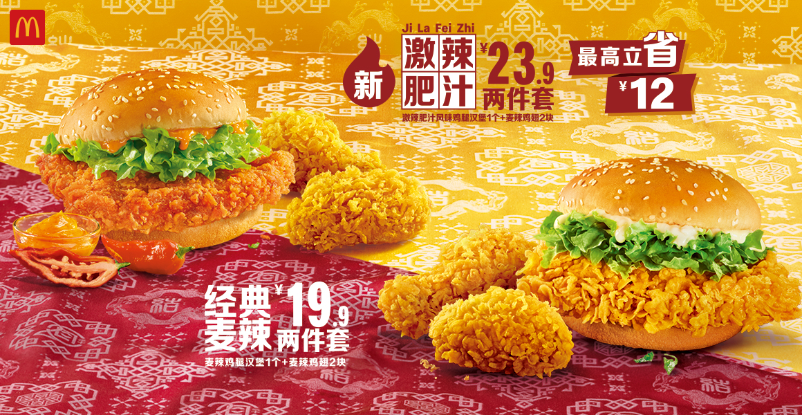 在此期間推出的激辣肥汁風味雞腿漢堡,是基于麥辣雞腿漢堡特別研發的限時新品。它選用和麥辣雞腿漢堡同款的優質白羽雞雞腿肉,搭配深受時下年輕人喜愛的“肥汁”風味,熱辣過癮、層次豐富。3月16日起,消費者可以超值價格,享受麥辣雞腿漢堡搭配麥辣雞翅的兩件套,或者激辣肥汁風味雞腿漢堡搭配麥辣雞翅兩件套。